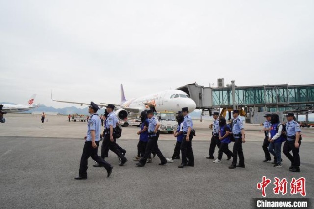 资料图:重庆警方押解犯罪嫌疑人。 重庆警方供图