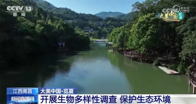 现在我们看到的是江西省南昌市梅岭国家森林公园,盛夏时节,这里山清水秀、林木葱茏,奇峰、溪泉、瀑布与原始森林融为一体,相映成趣。梅岭国家森林公园森林覆盖率达81.5%,面积超过16万亩,以“翠、幽、俊、奇”而闻名。近段时间,梅岭国家森林公园开展了生物多样性本底资源调查研究工作,为区域内生物多样性保护、管理和决策提供科学支撑,形成以生物多样性保护推动绿色发展、促进人与自然和谐共生的良好局面。