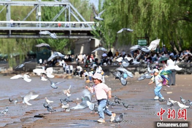 图为兰州市民在黄河边休闲游玩,享受暖阳。(资料图) 九美旦增 摄