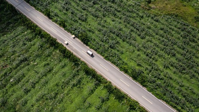 7月24日,汽车行驶在六枝特区郎岱镇猕猴桃产业基地农村公路上。