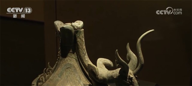 北京大学考古文博学院副教授 赵昊:为什么我们不直接把这件器盖放在这个尊之上,或者包括那个持龙人像放在器盖之上,这涉及到一个文物安全的问题。因为相对来说这些器物本体已经有一些变形,第二就是它长期埋在地下,本体已经变得比较疏松了,如果我们将它原来整体复原盖在一起,重量会很大,可能对于下面的支撑压迫比较重。