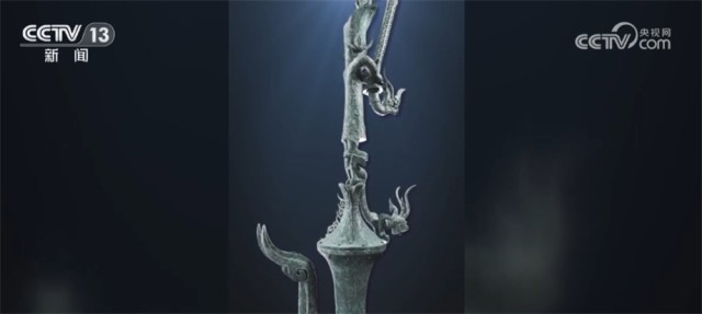 经过考古人员科学研判和仔细比对,在“合体”的“鸟足倒立顶尊神像”基础上又陆续识别出三号坑出土的“爬龙铜器盖”、八号坑的“铜持龙立人像”“铜杖形器”等器物都是这件文物的重要组件,合体后整件文物通高达2.53米。