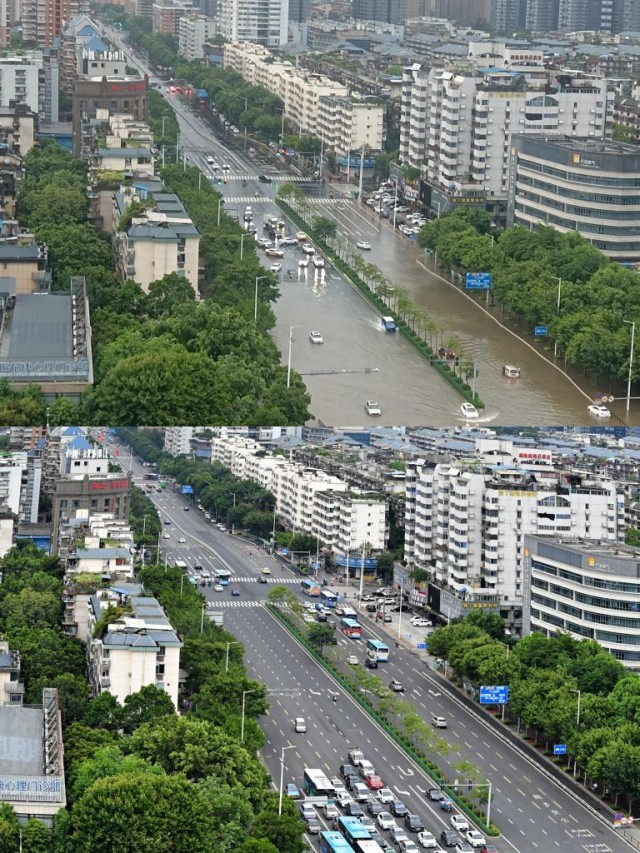 福州市国货东路内涝时和清退后对比。新华社记者 魏培全 摄