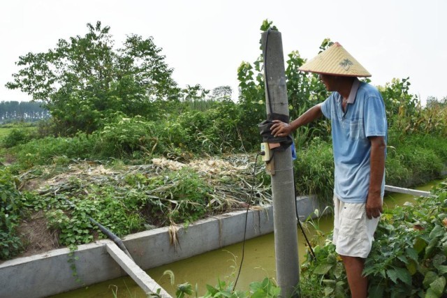 在位于洞庭湖平原的湖南省岳阳市君山区,66岁的农民李冬阳每隔一两天就要到田里“看水”。一旦发现水稻缺水,他就打开抗旱电表上的开关,启动水泵抽水灌溉。