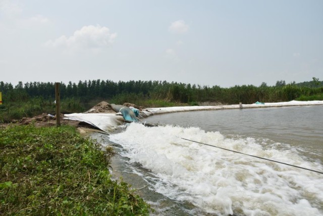 藕池河上,两台75千瓦的浮泵轰隆作响,每小时可抽水3000立方米。河水通过管道“哗哗”涌入涵闸、流进良心堡水库,可灌溉全镇三个自然村的5000亩水稻。
