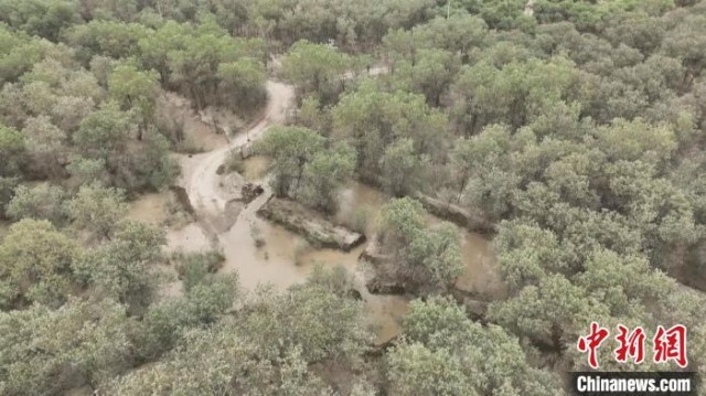 高空俯瞰,整个胡杨林区被生态水浸润。张树飞 摄