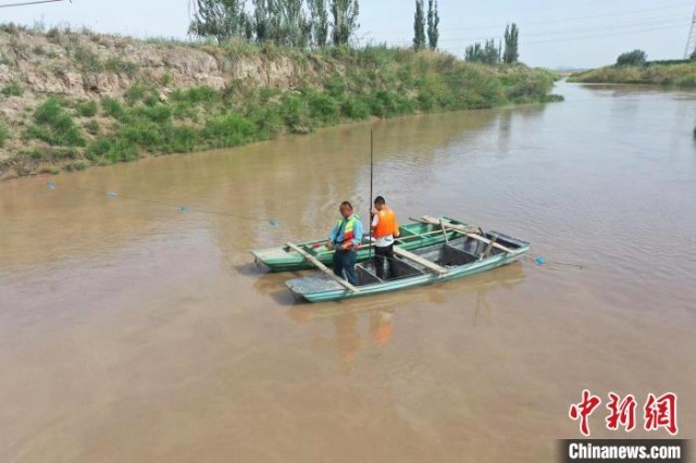 水利工人们对下放生态水的水位、流量情况进行实时监测。塔依尔·艾力 摄