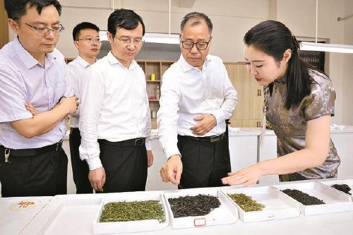 湖北省检察院检察长王守安(右二)走访省人大代表、湖北恩施学院硒茶学院院长何洁(右一),问计问需。