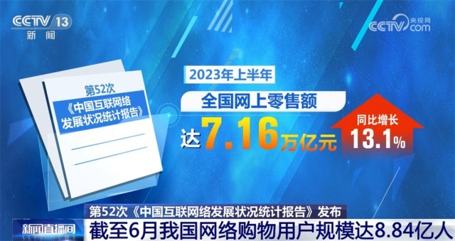 第52次《中国互联网络发展状况统计报告》显示,上半年,全国网上零售额7.16万亿元,同比增长13.1%,其中,农村网络零售额达1.12万亿元,同比增长12.5%。作为数字经济的重要业态,网购消费在助力消费增长中持续发挥积极作用。