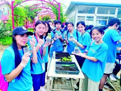 来北京参加夏令营的香港营员们在农场体验植物栽培。资料图片
