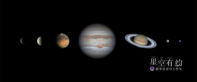 广东省天文摄影爱好者周志伟2020年拍摄的水星、金星、火星、木星、土星、天王星、海王星(多张叠加)。(本人供图)