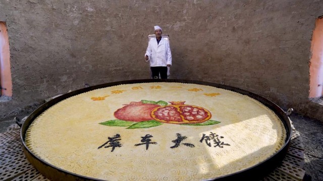 库车馕、色金黄,如车轮,溢酥香。一日未食,三日念想。新疆民间流传着这样一句:可以三日无肉,不可一日无馕。可见馕在老百姓餐桌的地位。在新疆,馕是各族群众都喜欢吃的食物。说到新疆的馕,不得不提库车大馕,它的直径达到了60厘米,被称为“馕中之王”。