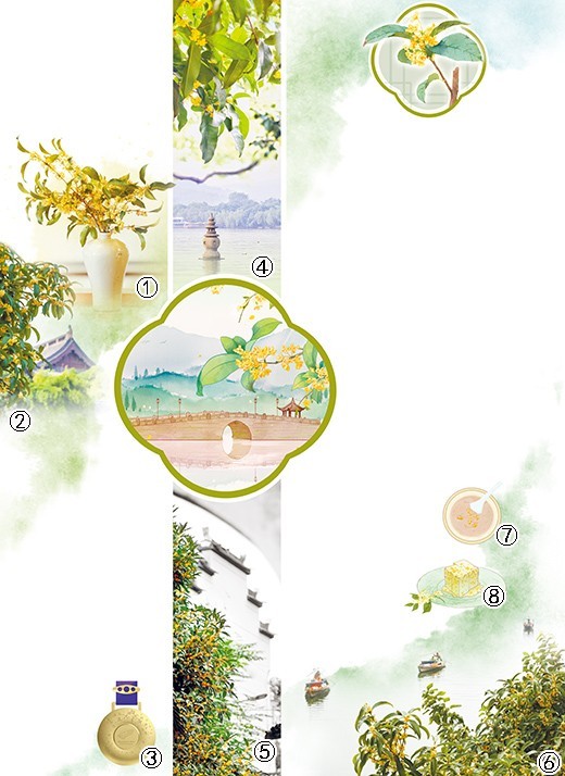 城市一角,售卖桂花年糕、桂花蜜的摊位前挤满顾客;餐馆饭桌,桂花鲜栗羹、桂花藕、桂花酒给老饕们带来味蕾的满足……赏完桂花的市民,总要带几样小食回家。