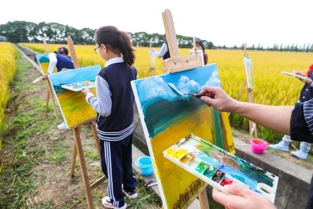 游客在青盛河畔农庄里绘画。(受访者供图)