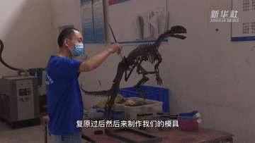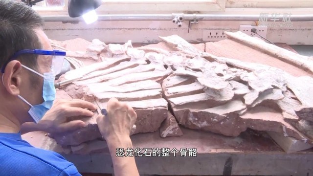 在重庆市地质遗迹保护与研究实验室化石修复中心,“化石医生”通过打包、修理、复原等步骤对恐龙化石进行修复,制作恐龙化石模型,进行科普展示和科学研究。