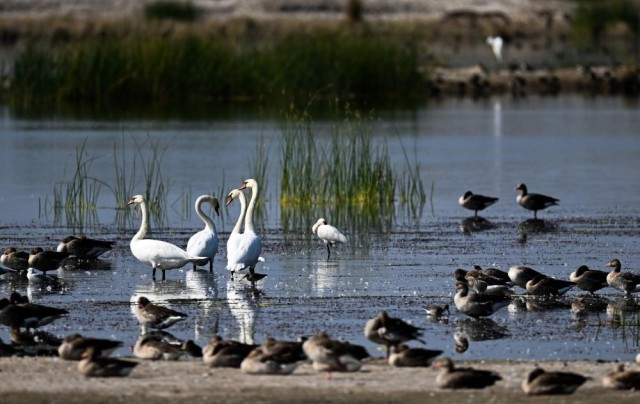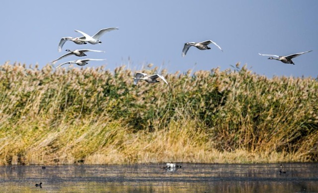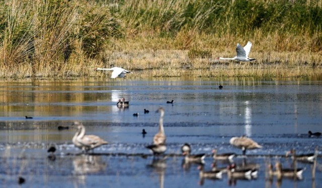 本来前往西伯利亚的疣鼻天鹅也在乌梁素海产卵、孵化、生活,乌梁素海成为我国最大的疣鼻天鹅繁殖基地。