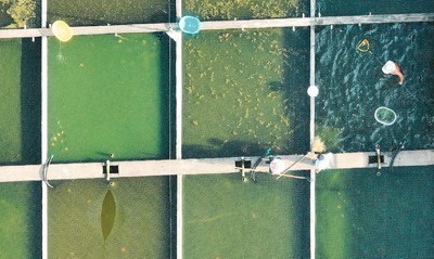 无人机航拍的关中村潘氏金鱼养殖基地全景。历经数年发展,养殖基地形成规模,成为龙头企业,带动村民增收致富。