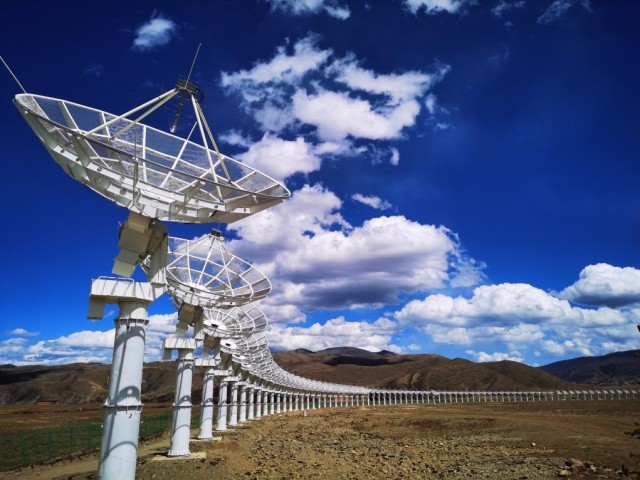 在四川省稻城县一处海拔3820米的开阔地,313部直径6米的抛物面天线均匀排布,围成一个直径1公里的大圆环,远远望去宛如平放在高原上的一串珍珠,这就是圆环阵太阳射电成像望远镜,它也被当地居民形象地称为“千眼天珠”。