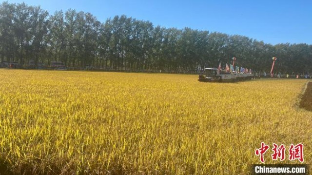 黑龙江省桦川县水稻田在秋收。王妮娜 摄