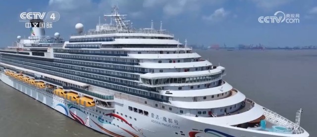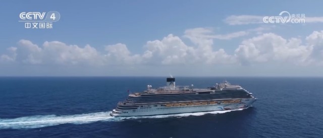 这个模型就是国产首艘大型邮轮“爱达·魔都”号,邮轮零部件数量多达2500万个,是复兴号高铁的13倍,敷设电缆超过4200公里。2023年9月,“爱达·魔都”号试航圆满成功,实现了中国大型邮轮设计建造零的突破。