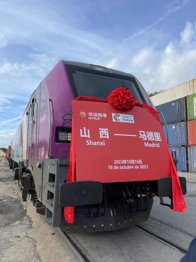 10月16日上午,伴随着一阵火车的长鸣,一列满载货物的中欧班列成功抵达西班牙马德里阿布罗尼加尔货运火车站,这是山西省首列通达西班牙的中欧班列。