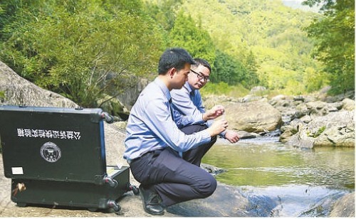 今年9月,宁强县检察院检察官对大熊猫国家公园陕西片区河流进行水质检测。