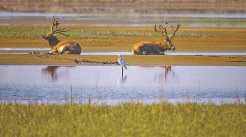 江苏大丰麋鹿国家级自然保护区肩负着科学构建生物多样性保护空间网络的使命任务,已经建立起三项世界之最:世界面积最大的麋鹿保护区、世界最大的麋鹿野生种群及世界最大的麋鹿基因库。近日发布的江苏大丰麋鹿国家级自然保护区第二轮综合科学考察结果显示,这里的生物多样性稳中有升,与麋鹿伴生的彩鹮、丑鸭等国家一级保护动物也首次出现在保护区内,黄海湿地的生物多样性正在逐步修复。