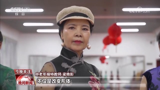 中老年模特教师 梁艳影:走猫步是一种有氧运动,不仅是改变形体,还能改变人的气质。其实我们中老年的生活并不无聊,我们穿着精致的衣服走在外面,生活上是很丰富的。