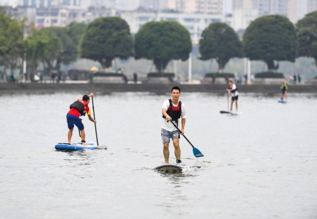 10月25日,浆板运动员在重庆市开州区汉丰湖进行训练。新华社记者王全超 摄