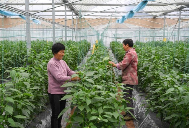 走入一个栽满螺丝椒的竖式连栋大棚,66岁的莲池村脱贫户王家贤正在指导工人采摘。“一个月务工收入近3000元,还有20多亩土地的流转费收入。”王家贤说。
