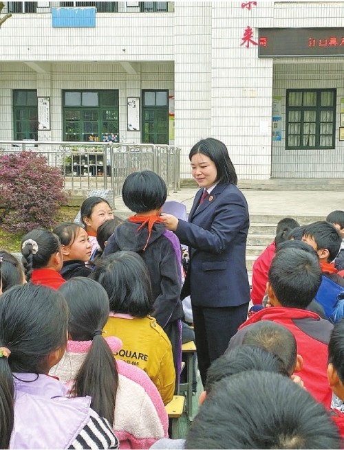 今年4月,杨茜到江口县桃映镇溪口完小开展“全民国家安全教育日”法治宣传活动。