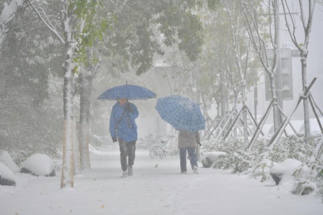 11月6日,在沈阳市浑南区,行人在雪中出行。 新华社记者杨青摄