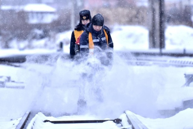 “为了提高清雪效率,我们事先调集了大功率风力除雪机、重型轨道车、除雪车辆等清雪设备。”哈尔滨局集团公司牡丹江工务段生产调度指挥中心主任马河海说,职工们以雪为令,目前都奋战在抗击暴雪一线。