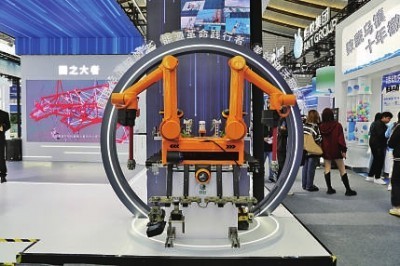 11月7日,“互联网之光”博览会上,国家电网展示的高压线路检修机器人。光明网记者 崔益明摄/光明图片
