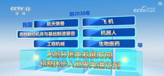 到2030年,我国航天装备、飞机、高档数控机床与基础制造装备、机器人、工程机械、生物医药等大部分优先发展方向将整体步入世界先进行列。
