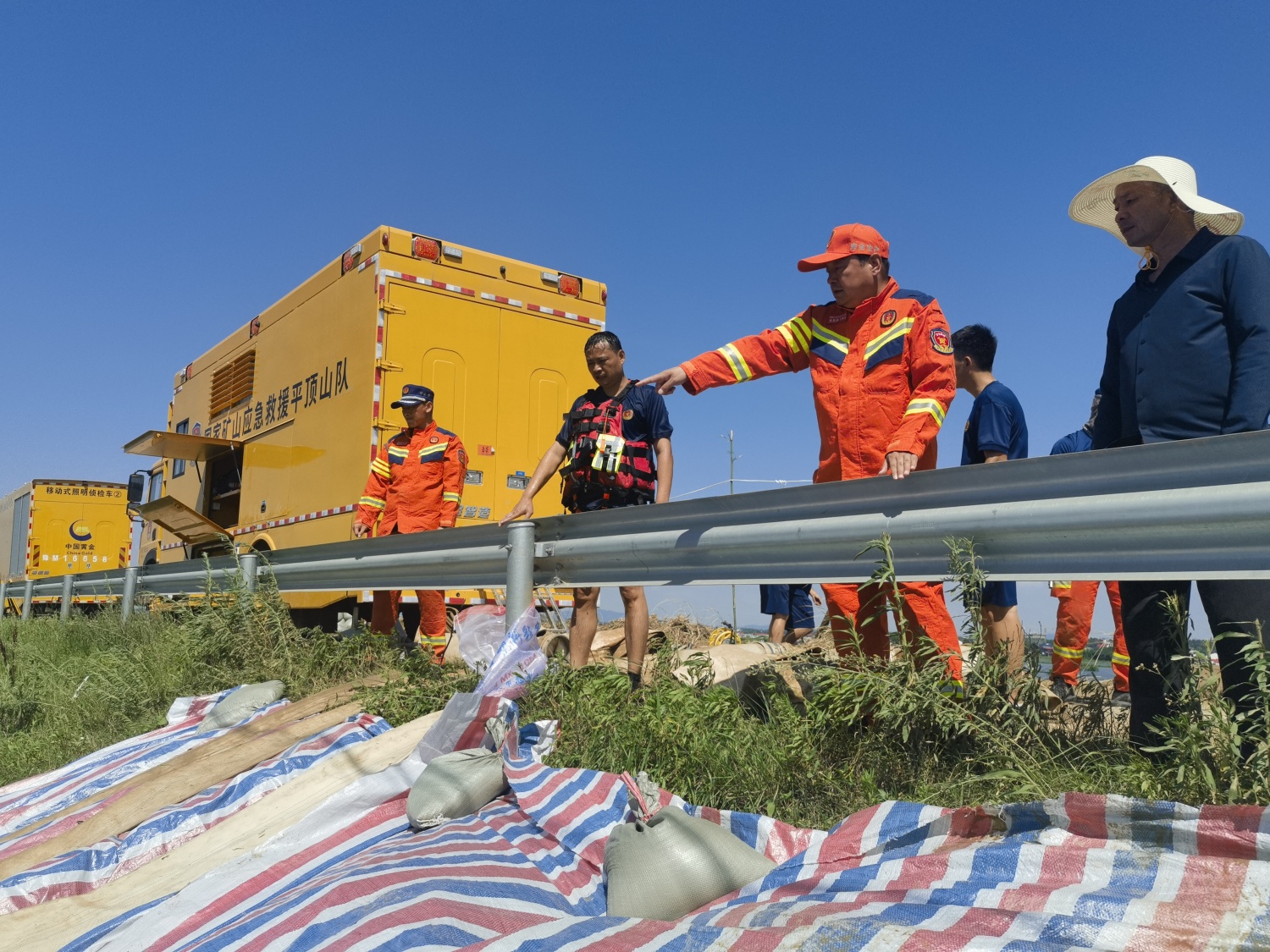7月6日,该队转战汨罗市罗江镇。该地区共有1.5万余亩土地被淹,两万余户居民受灾,救援人员仅用3个小时就完成排水设施运输、安装、调试工作。同时,该队根据矿山救援的经验,创造性地实施板材加防雨布护坡工艺。这一工艺以显著效果受到地方政府好评,被应用推广到其他救援队。截至7月8日下午6时,救援队共计排水约19.6万立方米。