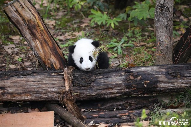 2024年10月12日,成都大熊猫繁育研究基地,2024年新生大熊猫宝宝与游客见面。视觉中国