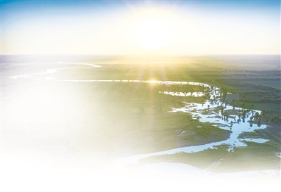 内蒙古自治区通辽市辽河公园,微风荡起碧波,鸟儿啾鸣。王金举起镜头,拍下西辽河两岸的秀美风光。