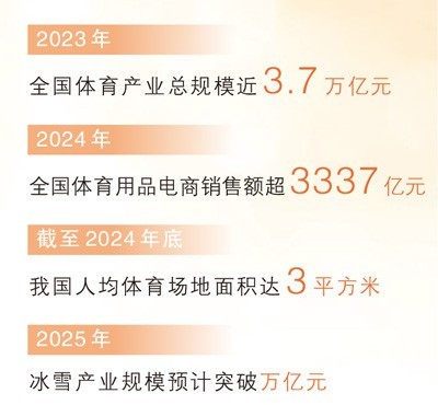 体育产业加速奔跑。2023年全国体育产业总规模近3.7万亿元,2024年全国体育用品电商销售额超3337亿元,今年冰雪产业规模预计突破万亿元……一个个跃动的数字背后,是不断释放的发展潜力,体育产业成为助推高质量发展的新引擎。