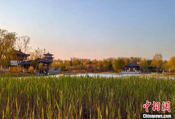 3月31日傍晚,雄安新区悦容公园景色。中新网记者 韩冰 摄