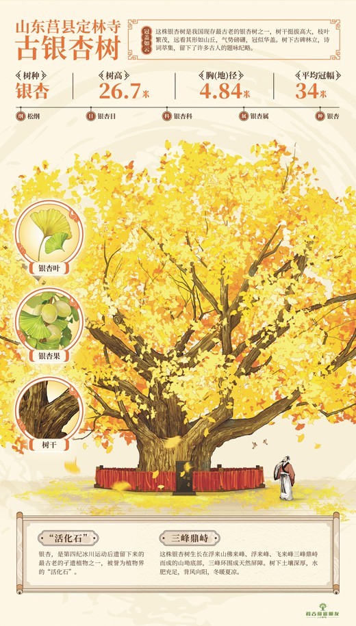 今年8月,在中国邮政发行的《古树名木》特种邮票上,一株山东日照市莒县的古银杏树格外引人注目。