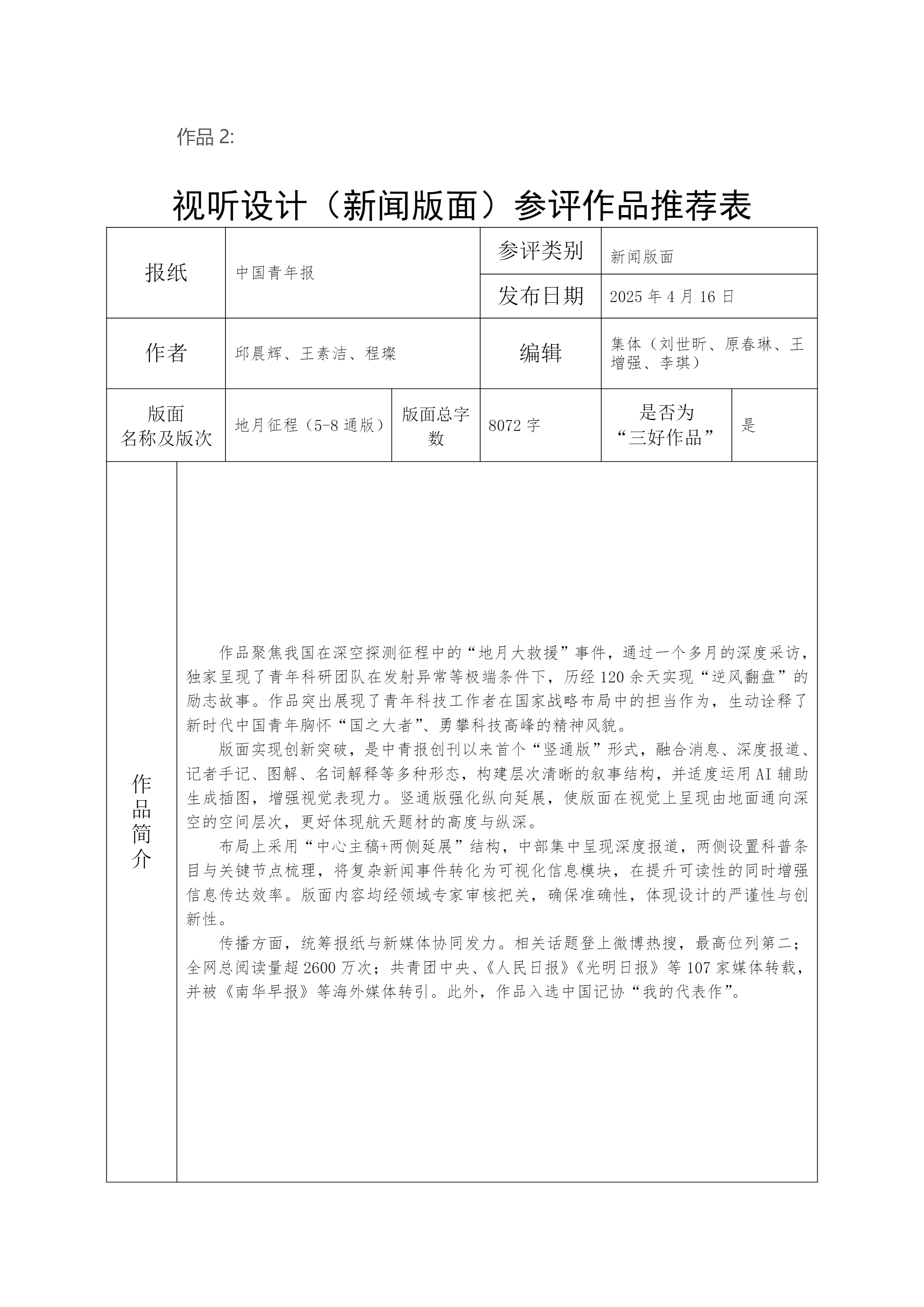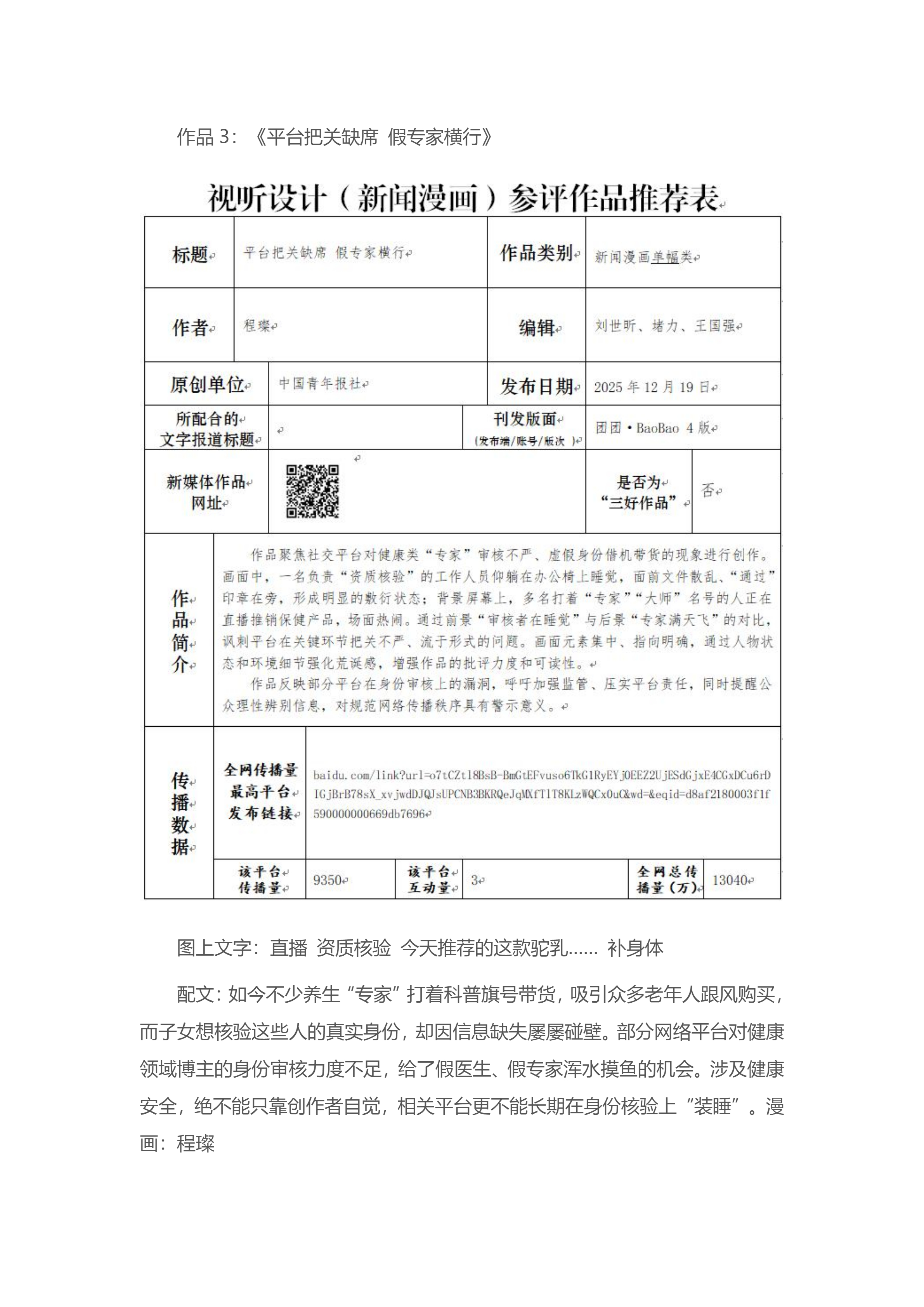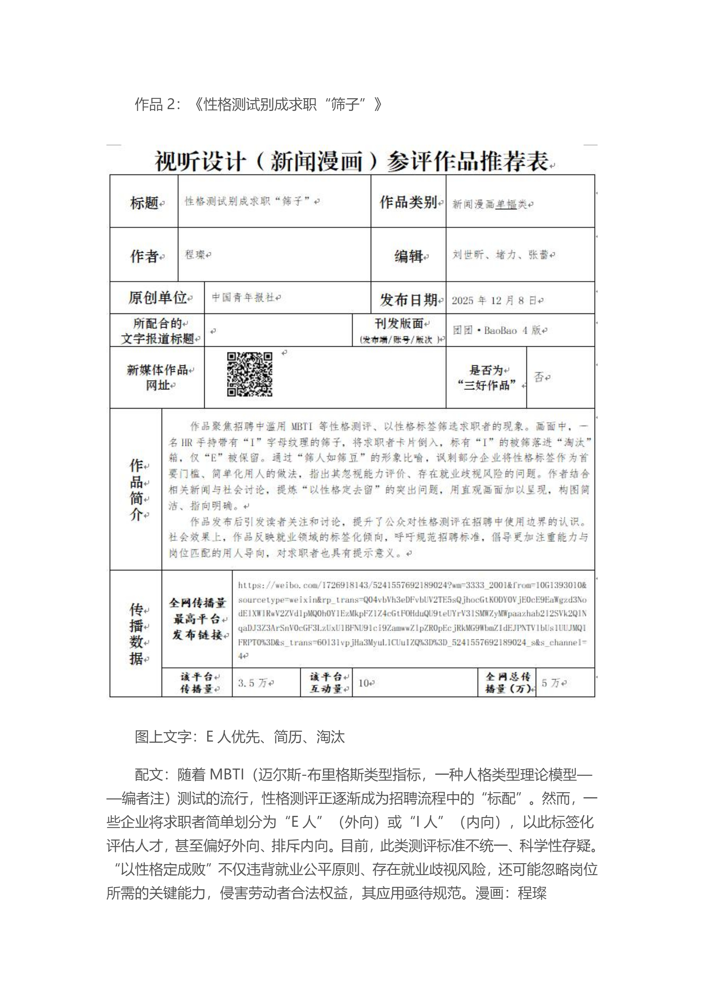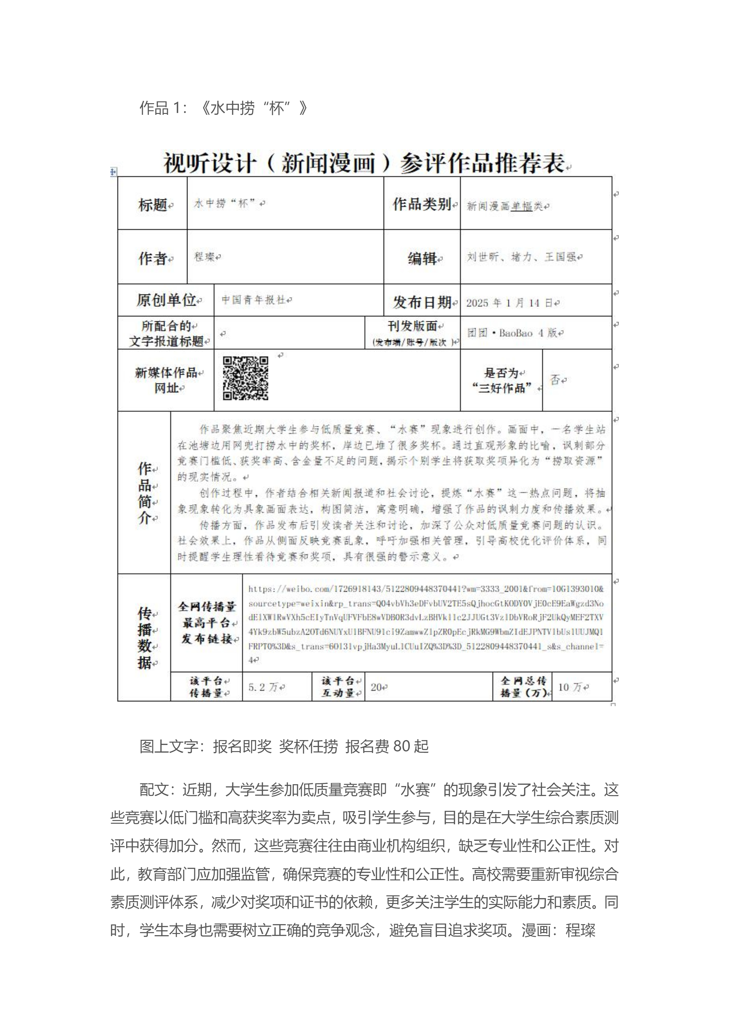 中国青年报社推荐参评第36届中国新闻奖新闻漫画、新闻版面作品专项初评公示