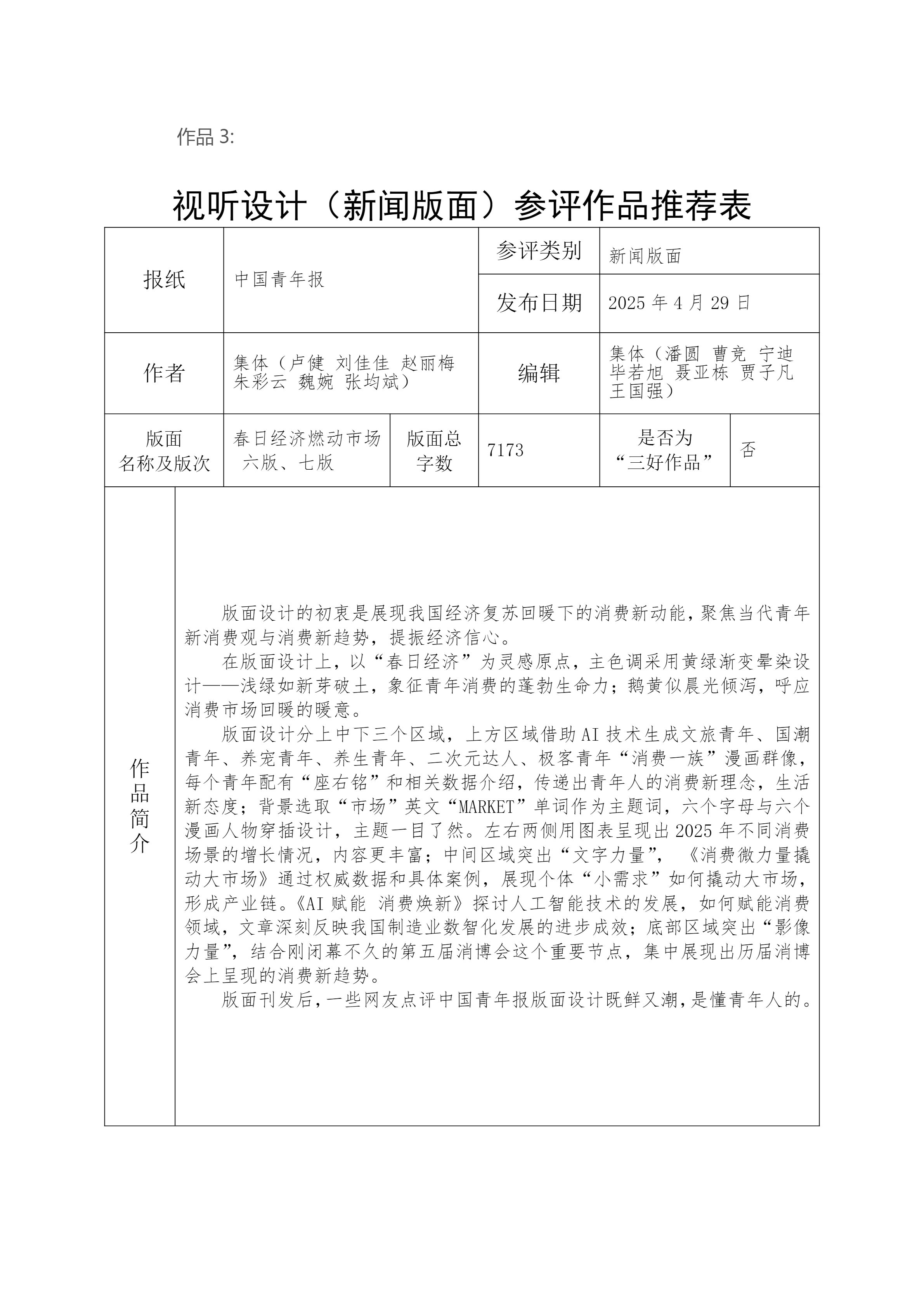 根据第36届中国新闻奖新闻漫画、新闻版面作品专项初评工作通知的有关要求,经向报社各部门单位征集、报社评委会研究推荐,拟推荐以下作品参加专项初评。