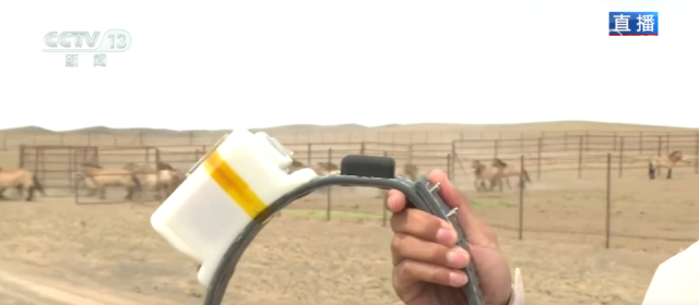 可能很多人会好奇,野马放归了以后,它们在大自然中的生活怎么样?其实,保护区现在有了空天地的监测手段监测马儿的野外生活。像记者手上的项圈就是戴在野马脖子上的,摸上去皮很软,重量大概有一斤多,还可以根据野马脖子的粗细调节大小,不会给它们造成太大的负担。它这里有可以定位的芯片,还有摄像头;另外一侧还有提供续航的太阳能电池板,通过项圈就可以把普氏野马在野外生活的第一手鲜活的资料回传给后台的系统,为今后普氏野马的科研保护,提供一个很重要的科学依据。