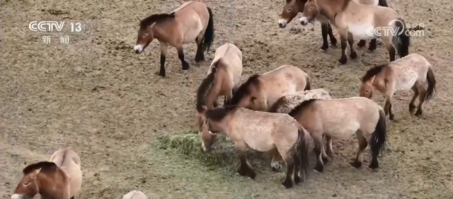 工作人员介绍,总共分为三步。第一步就是在普氏野马繁育中心进行繁育,第二步会挑选合适的野马进入野化训练基地,在那里模拟自然环境,生活一段时间。这时候,工作人员会减少喂养次数、取消固定喂养点和棚舍等人为的庇护,提高它们的野外生存能力。第三步,再把适应得比较好的野马送到乔木希拜普氏野马监测站,在这里继续生活1个月左右。经过这三段野化适应训练,普氏野马就要会回归到大自然了,它们会凭借自身的能力在野外觅食生存。