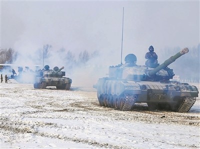 上图:该旅在严寒条件下组织训练。