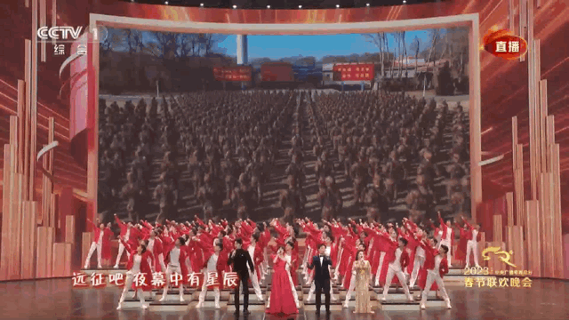 歌曲《远征》中,伴随着慷慨激昂的歌声,背景视频中梦天实验舱发射和对接、陆军2022年开训动员、辽宁舰航母编队驰骋海面、2022珠海航展“运-20”起飞,这些无论反复看多少次都会令人激动不已、催人奋进的画面久久萦绕在无数人心间。