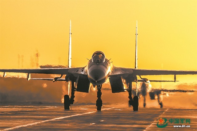战机依次滑入跑道。