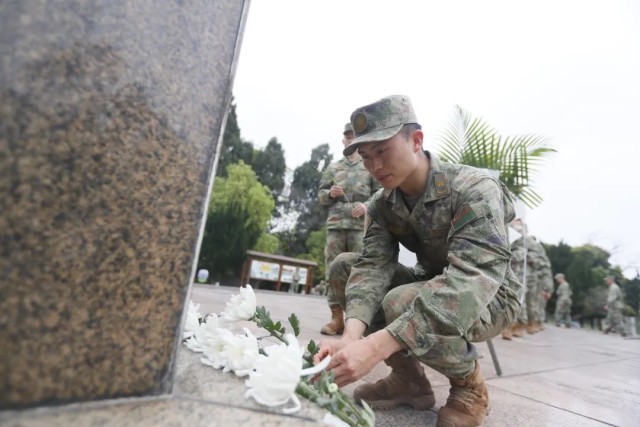 南部战区海军某通信团组织官兵前往驻地烈士陵园,开展“缅怀革命先烈、矢志奋斗强军”主题实践活动。烈士陵园庄严肃穆、松柏苍翠,烈士纪念塔巍然耸立,这里长眠着献身于无产阶级革命事业和为人民利益而牺牲的烈士。官兵依次向烈士敬献鲜花,为烈士墓碑描红,缅怀先烈的伟大精神。