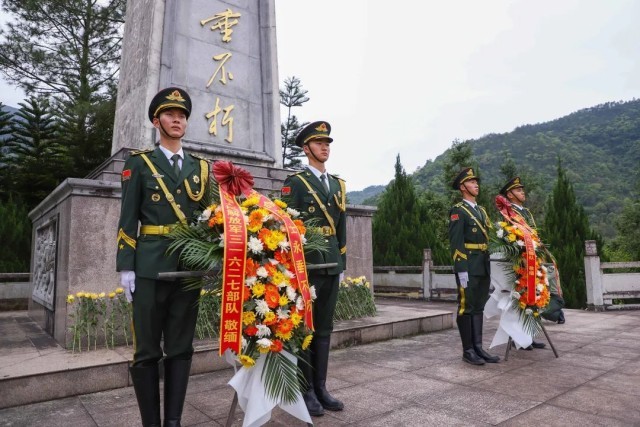 西部战区空军某部官兵代表整齐列队,在红军百丈关战役烈士纪念园,开展主题祭扫活动,重温红军百丈关战役全过程,感悟老一辈革命将士不怕牺牲、浴血奋战的革命英雄主义精神,缅怀长眠于此的近万名革命烈士,并致以崇高的敬意。